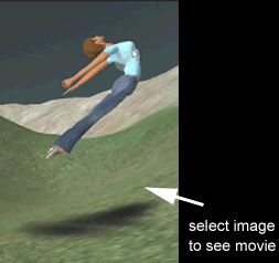 Now I will explain how the user clicks and drags joints. While puppeteering, the user's mouse cursor position is used to project a ray out into the 3D scene (the normalized vector from the camera viewpoint to the cursor location on the view plane. This vector is scaled in length to equal the distance from the camera viewpoint to the ball which the user clicked on to start puppeteering. Once clicked and dragging, this distance remains constant, and the ball sticks to the surface of an implicit sphere surrounding the camera viewpoint. Since the ball being dragged is connected to at least one other ball by a spring force, all neighboring balls get dragged along with it. As explained above, there are various constraints that keep the balls from moving unnaturally. There is also a constraint that keeps the ball being dragged from moving too far away from its original position when clicked. This keeps things fairly well-behaved while puppeteering (although it is turned off for full-blown ragdoll mode, as the video below shows). |