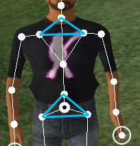 This picture shows the root position as a white dot. The pelvis position can be offset from the root position while puppeteering, as shown. |